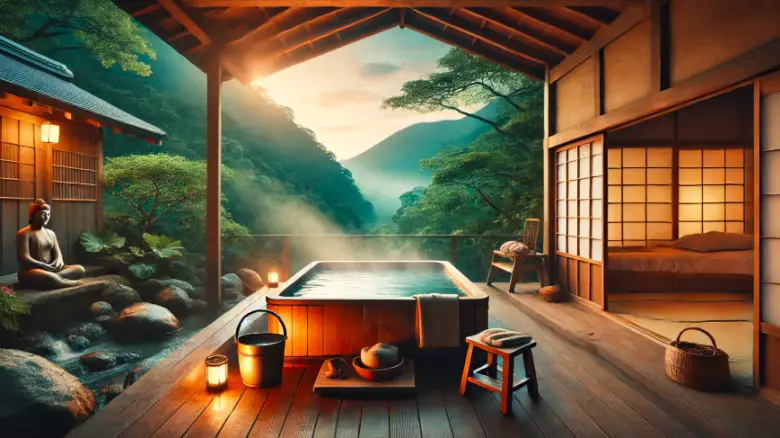 篠栗の温泉で家族風呂を満喫。木製の浴槽と自然の景観が心と体を癒します
