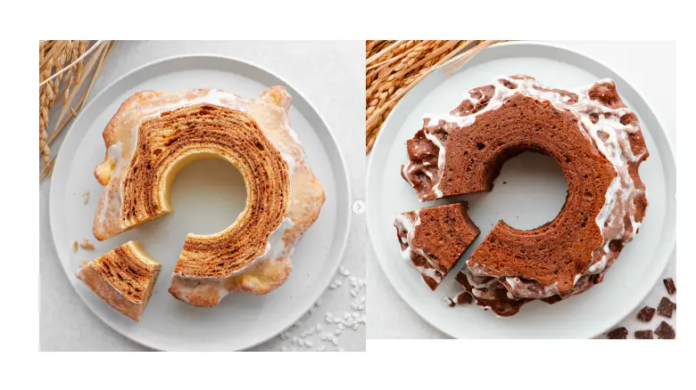 バウムクーヘンは、層ごとに焼き上げられた美しい層と、表面を覆う甘い砂糖グレーズが特徴です。視覚でも味覚でも楽しめる一品です。