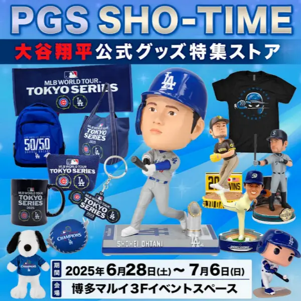 2025年6月28日(土)から7月6日(日)まで、福岡・博多マルイにて「PGS SHO-TIME 大谷翔平公式グッズ特集ストア」が期間限定で初開催されます。MLB公式ライセンスによるグッズを直接手に取れる貴重なイベントとして、野球ファンの間で大きな注目を集めています。